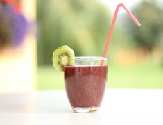 Do láhve od Smoothie mixéru nalijeme 2 dcl rybízového džusu. Přidáme 1 čajovou lžičku směsi semen ( chia semínka, semena slunečnice, jádra piniových semen, semena tykve atd). Přidáme 1/2 blumy, 1/4 broskve a 1 plnou polévkovou lžíci sušených květů ibišku. Z 1/2 kiwi si odřežeme kolečko na ozdobu, zbytek dáme do napoje. Přidáme sáček mladého ječmene, který nám smoothie obohatí o neuvěřitelnou škálu vitamínů a dalších potřebných látek pro tělo. Láhev uzavřeme a pomocí smoothie mixéru vše důkladně rozmixujeme.