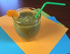 Pomeranč, kiwi, zázvor a banán si oloupeme. Dáme do mixéru a společně s brusinkovou šťávou a zeleným ječmenem umixujeme. Toto smoothie je jedinečné svou kiwi-zázvorovou chutí.